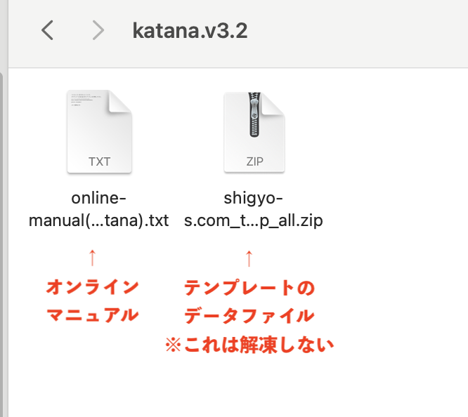 - テンプレートデータのzipファイル(「shigyo-s.com_t..(長いので省略).zip」)